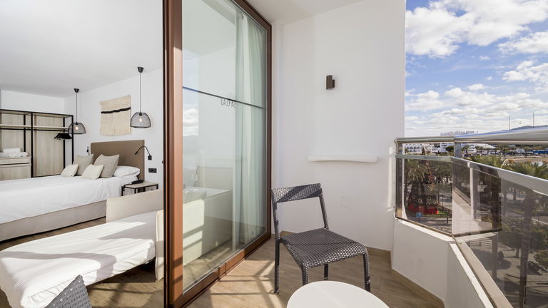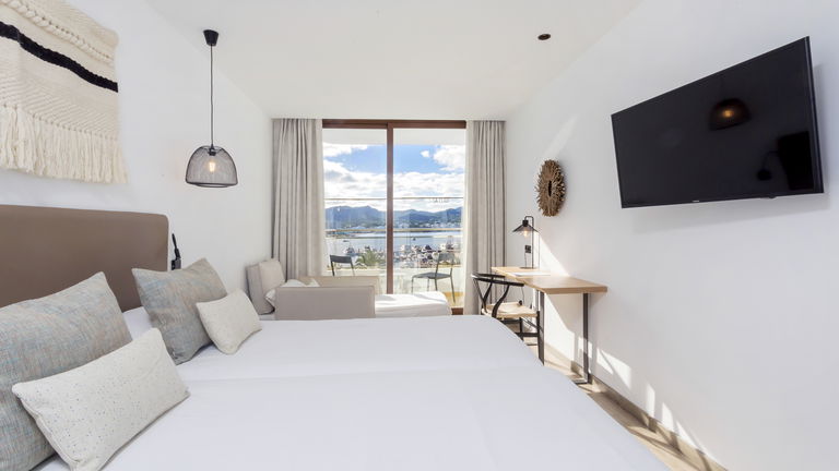 Double or single bed, sofa bed, full bathroom with shower and hairdryer, satellite TV, air conditioning, minibar, heating, safe, free Wi-Fi and balcony with sea views.