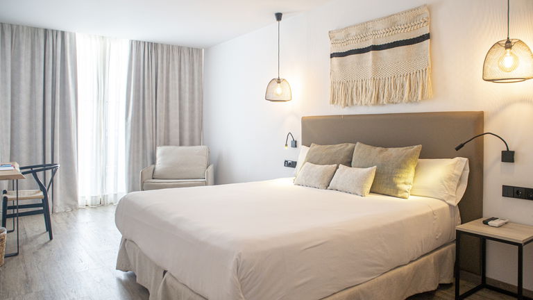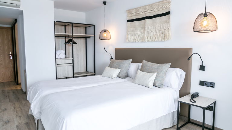 Double bed or two single beds, full bathroom with shower and dryer, satellite TV, air conditioning and heating, safe, minibar, free wifi and balcony.