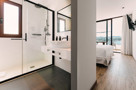 Double or single bed, sofa bed, full bathroom with shower and hairdryer, satellite TV, air conditioning, minibar, heating, safe, free Wi-Fi and balcony with sea views.